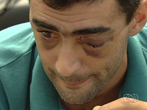 O técnico em computadores Eliezer dos Santos denuncia um caso de violência no trânsito em Goiânia. Ele afirma ter sido agredido com uma chave de fenda durante uma discussão com um motorista na Avenida T-48, no Setor Bueno. O motociclista quase teve os olhos perfurados. A Polícia Civil investiga o caso. A briga aconteceu na última quinta-feira (23).